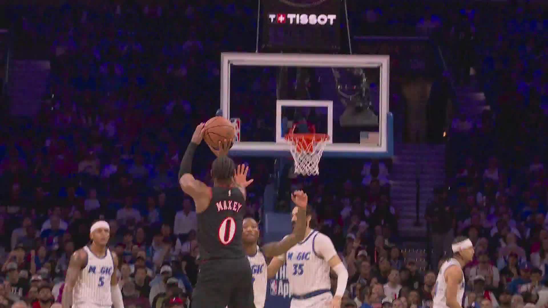 Maxey adelanta adelanta a los 76ers con gran triple.