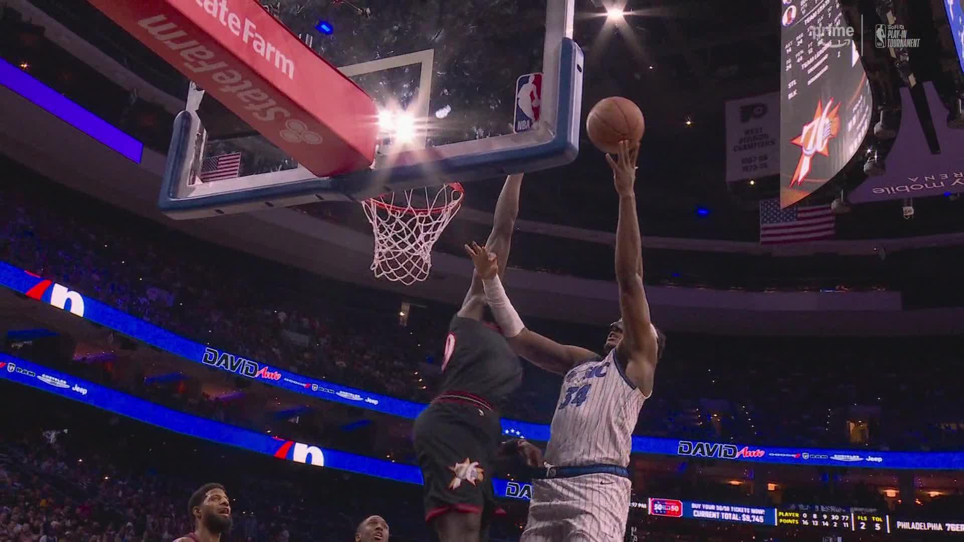 Bona vuela y bloquea el doble del Magic, los 76ers siguen liderando 69-62.
