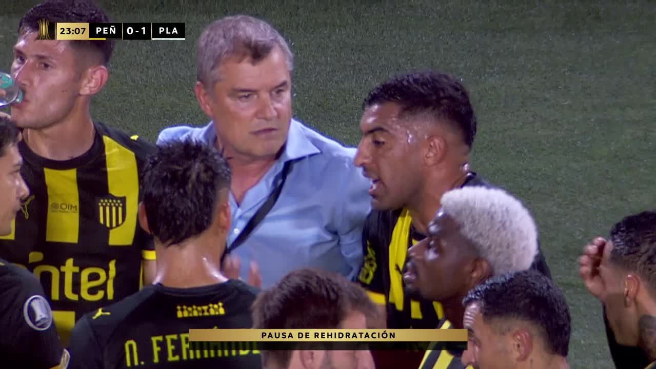 El entrenador y el capitán de Peñarol fueron quienes tomaron la palabra en la primera pausa de hidratación ante Platense.